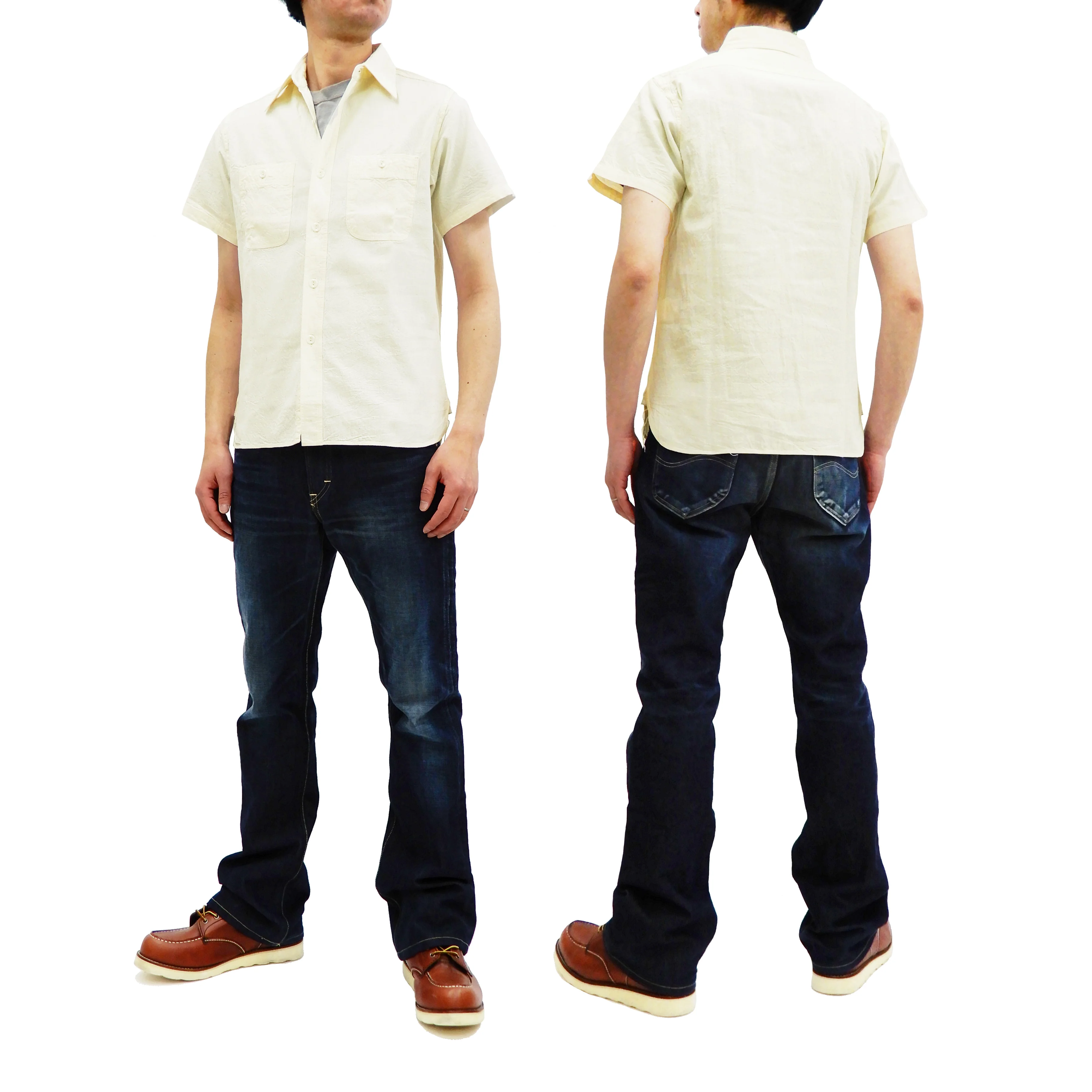 Buzz Rickson Chambray Shirt Men's U.S. Military Style Short Sleeve Button Up Shirt BR35857 Ecru