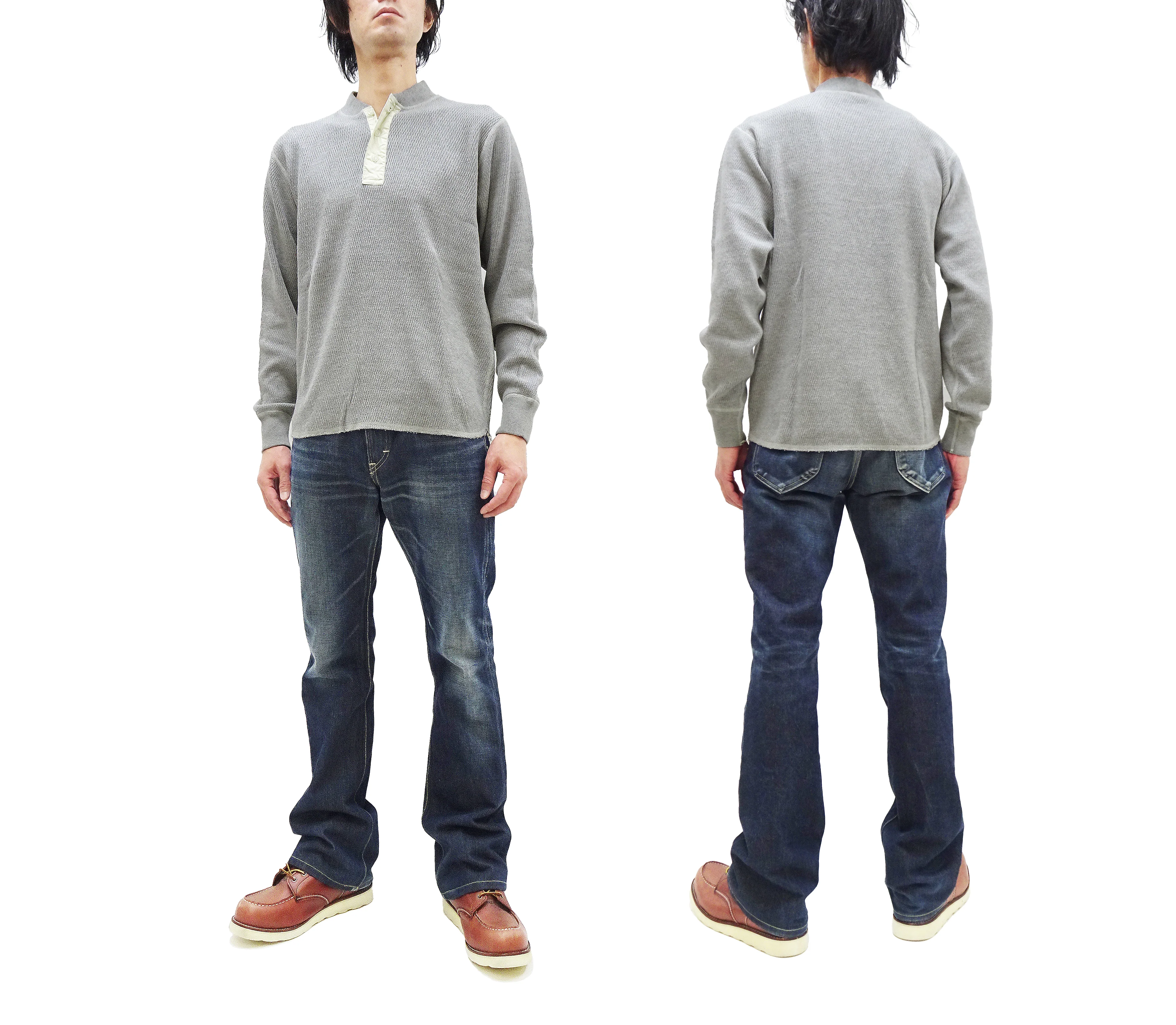 Buzz Rickson Waffle-Knit Thermal Henley T-Shirt Men's Long Sleeve Plain 3-Button Placket Heavyweight Thermal Tee BR68130 113 Heather-Gray