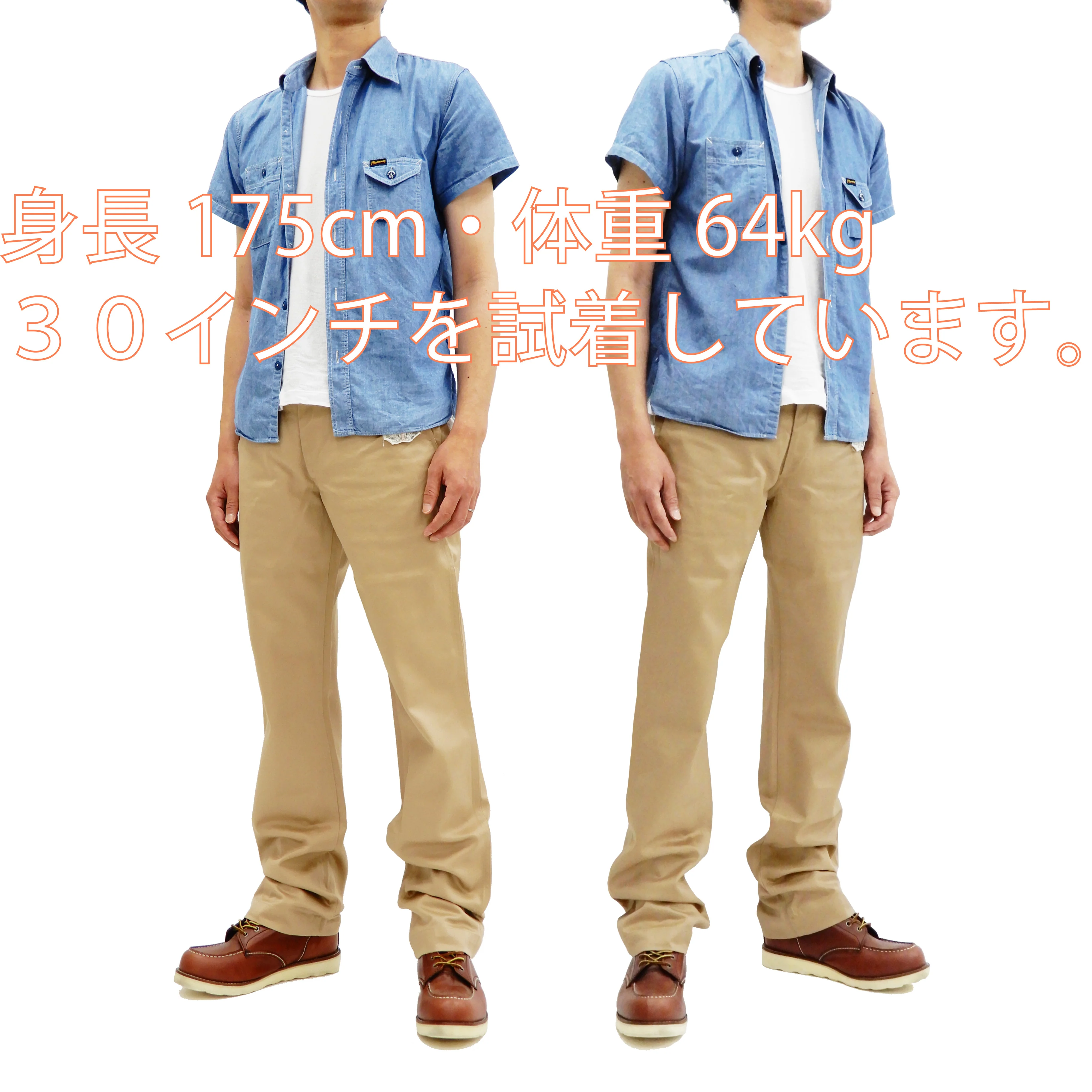 BR40025A Buzz Rickson's ( Buzz Ricksons Buzz Rickson ) by Toyo Enterprises Men's Casual Fashion Men's Flat Front Trousers with Classical and Fashionable Forms of Military Clothing / Mens Chinos Trousers Pants / Chino Pants for Men / Stylish Slimmer Fit with Zip fly, Full Length, Ttraditional Mid-Rise, Slimmer Fit through Seat and Thigh, Straight to the Leg Opening (Slightly Taper Down to the Leg Opening) and Classic Five-Pocket Design / These chino trousers are made in Japan and produced by Buzz Rickson. The Buzz Rickson label, a division of Toyo Enterprise in Japan, is famous around the world for its expertly-crafted authentic military clothing. This product is made especially for Japanese market and made for Japanese clothing sizes. Body pattern is designed and inspired by the US Army Cotton Khaki Trousers, but these trousers are outfitted with Buzz Rickson's brand own detailing and design in a contemporary approach. The beauty of this piece is the balance of classic construction and modern updates from Buzz Rickson. With the inspiration from US Army Cotton Trousers, these pants have been re-designed for a fashion purpose that still works it with US Army style slightly updated for the modern man. Made from 100% cotton pre-washed, non-stretch, chino cloth twill fabric. And these chinos pants is originally intended to wear as a Stylish Slimmer Fit for a more fashion-forward looks than classic fit. This trousers are new original creations by Buzz Rickson.