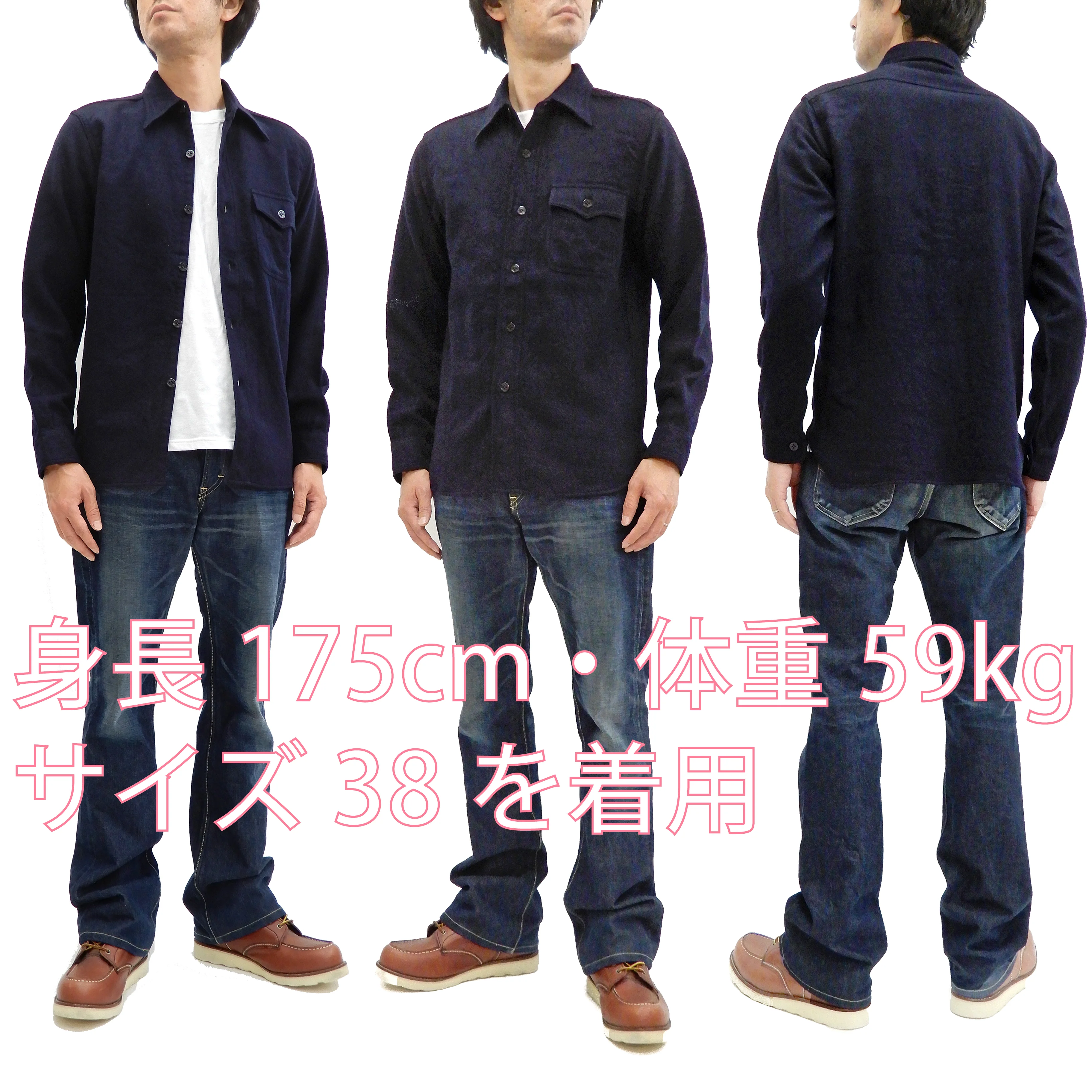 Buzz Rickson US Navy CPO Shirt Mens Plain Long Sleeve Wool-Flannel Shirt BR24961 Navy-Blue