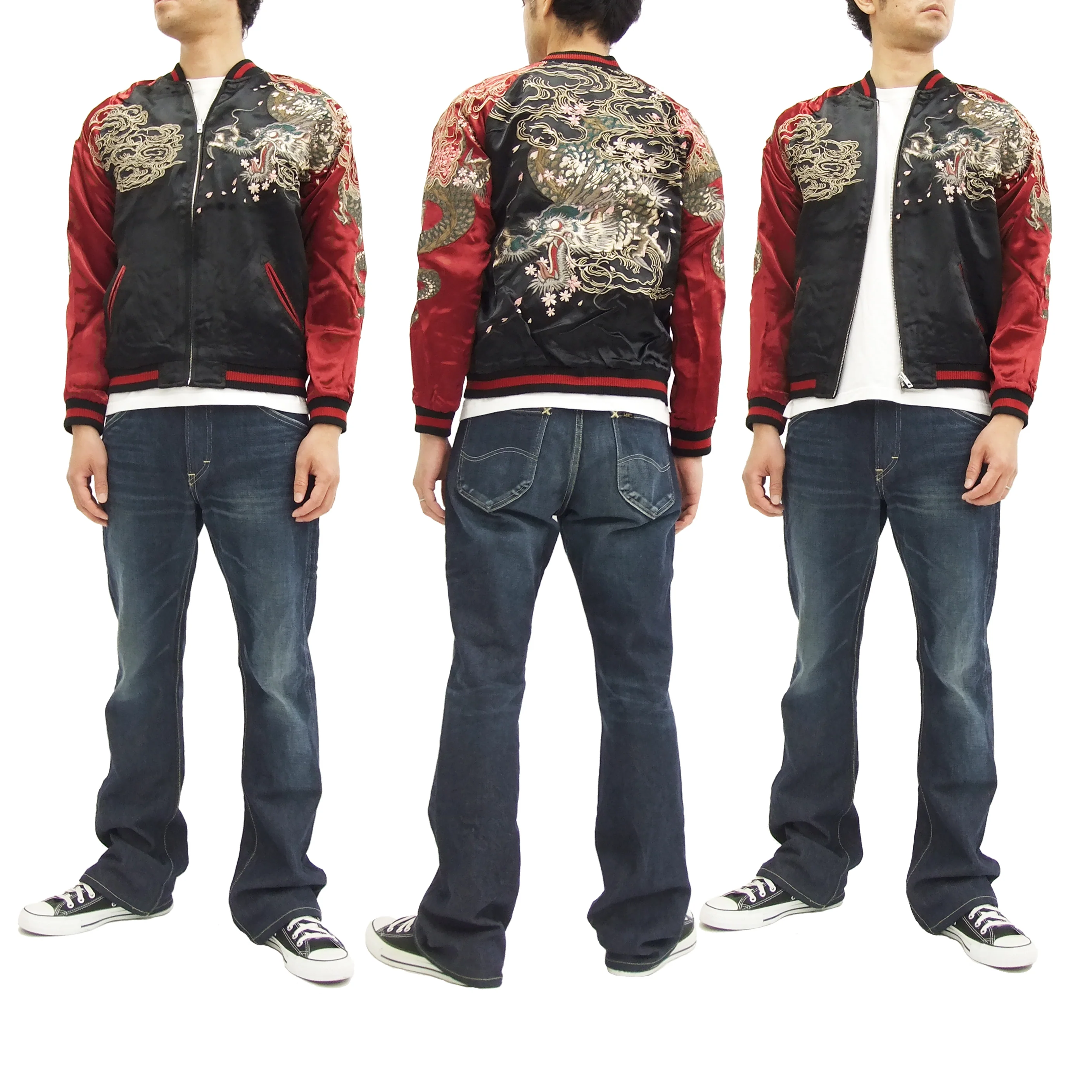 SATORI Japanese Souvenir Jacket Dragon Men's Sukajan GSJR-001 Black/Wine