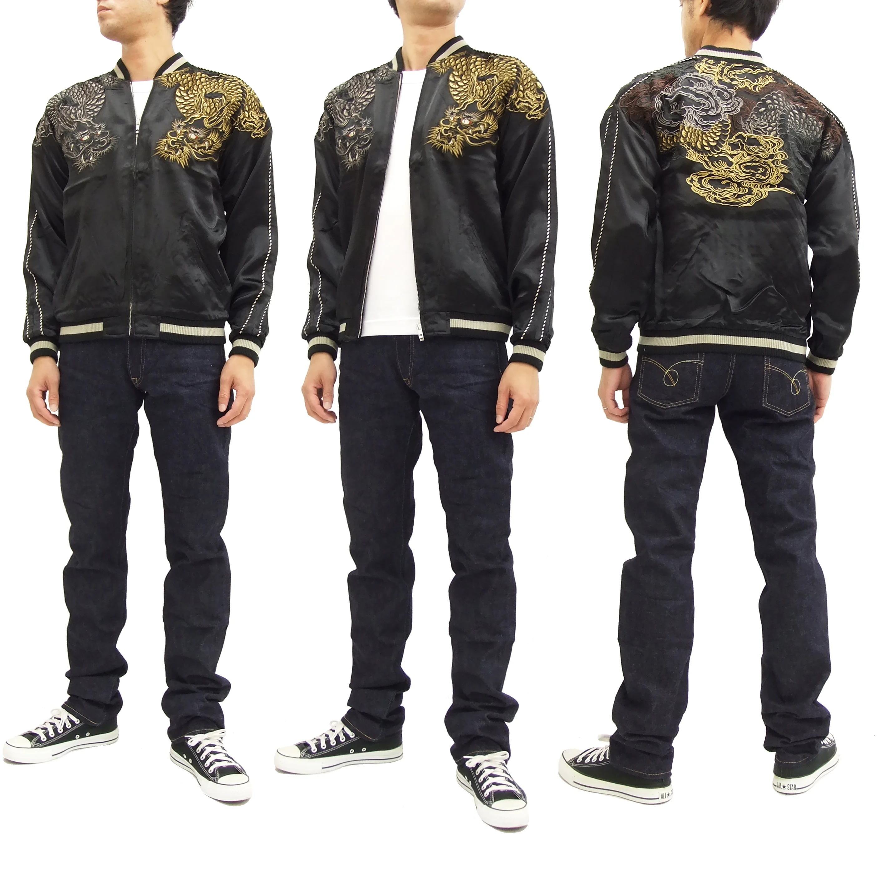 SATORI Japanese Souvenir Jacket Dragon Men's Sukajan GSJR-009 Black