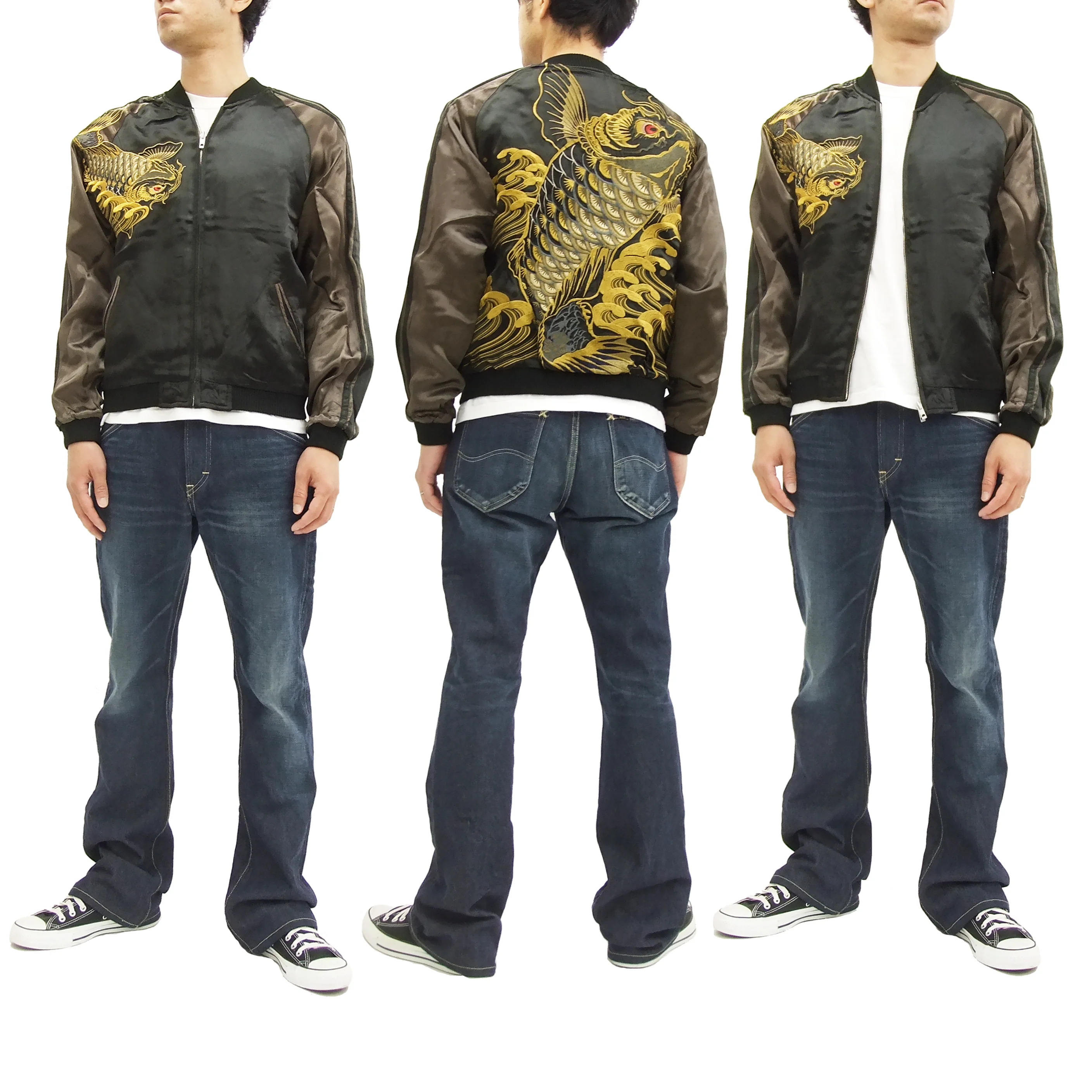 SATORI Japanese Souvenir Jacket Koi Fish Carp Men's Sukajan GSJ-015 Black/Brown