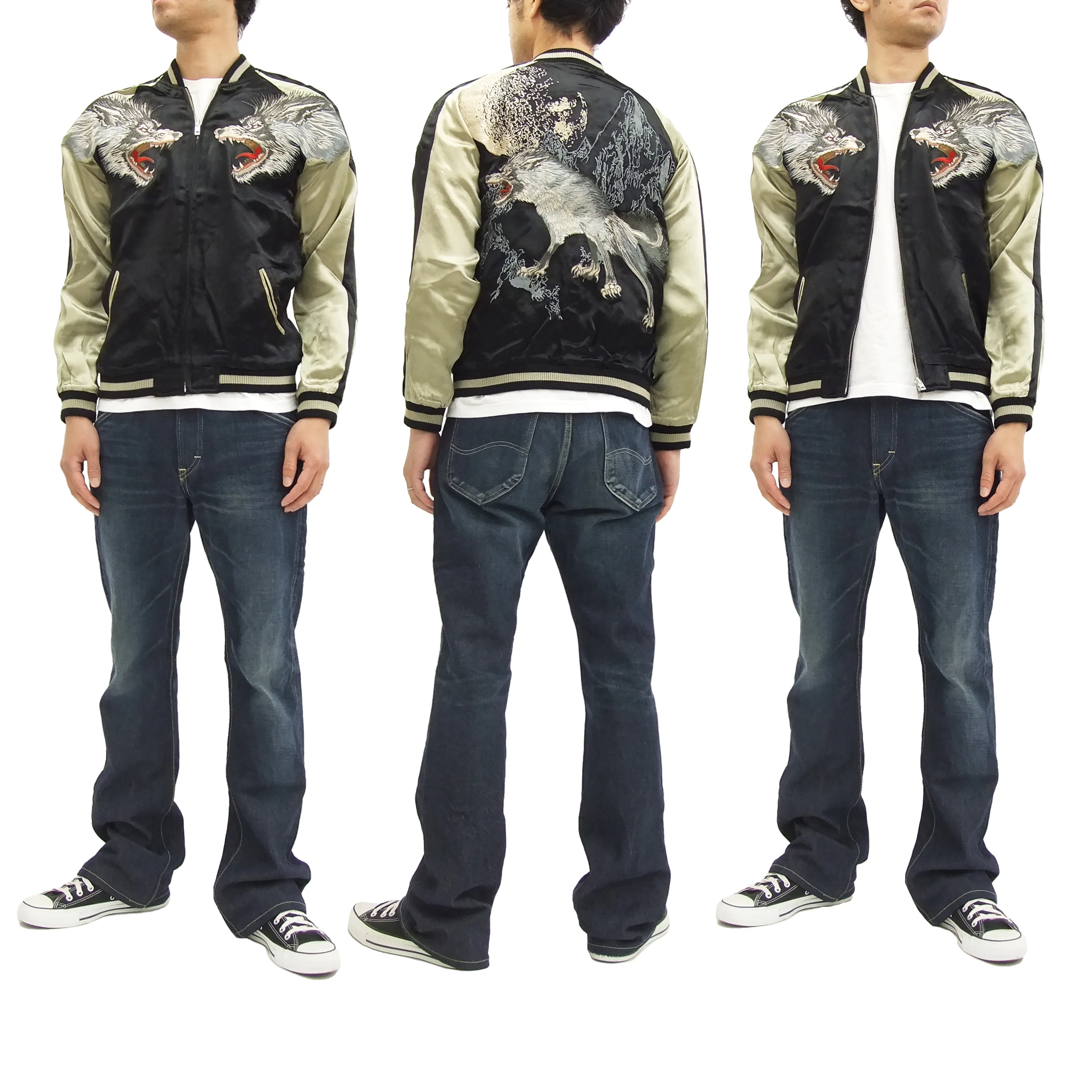 SATORI Japanese Souvenir Jacket Wolf Men's Sukajan GSJR-006 Black/Gold
