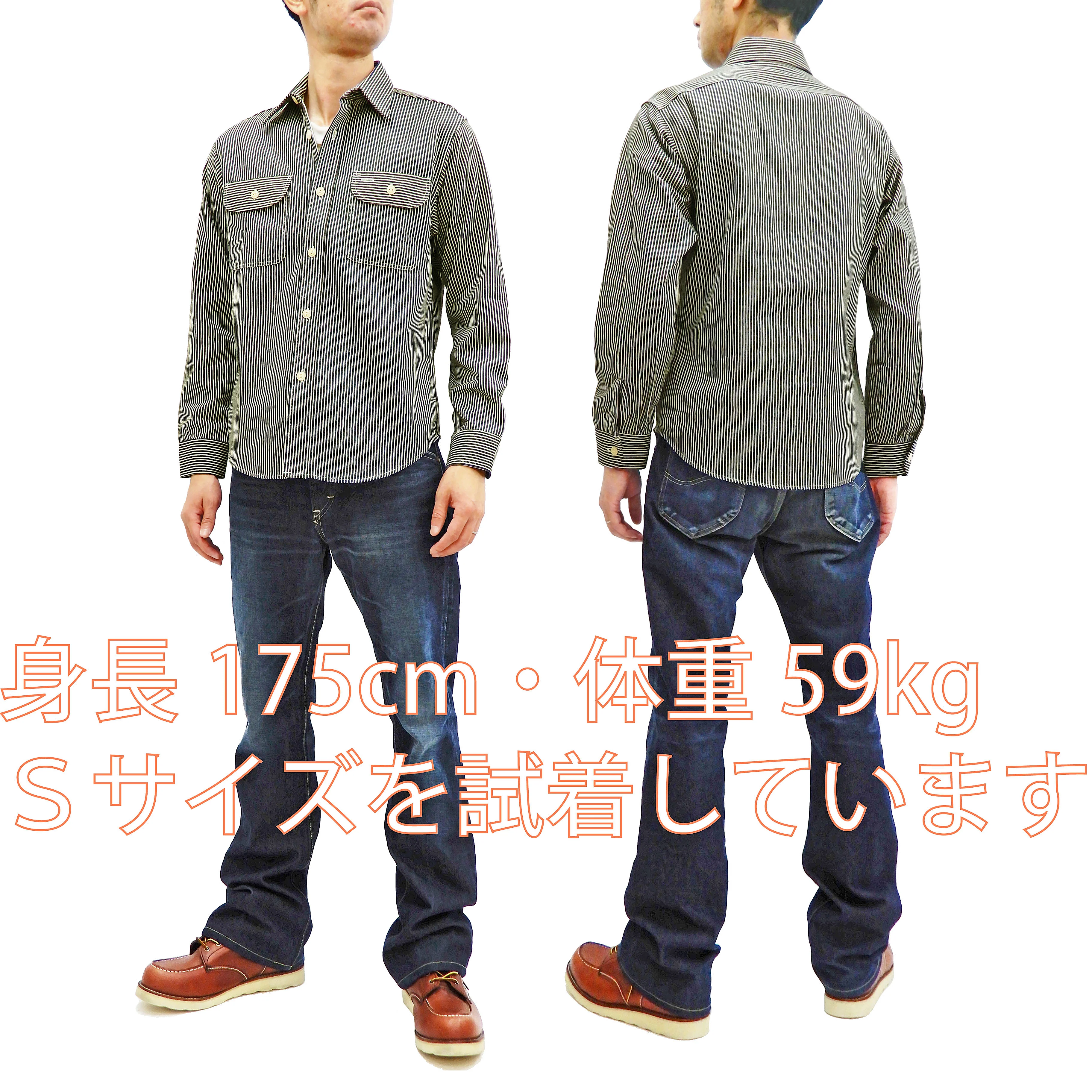 Sugar Cane Hickory Stripe Work Shirt Men's Casual Long Sleeve Button Up Shirt SC27853 Black