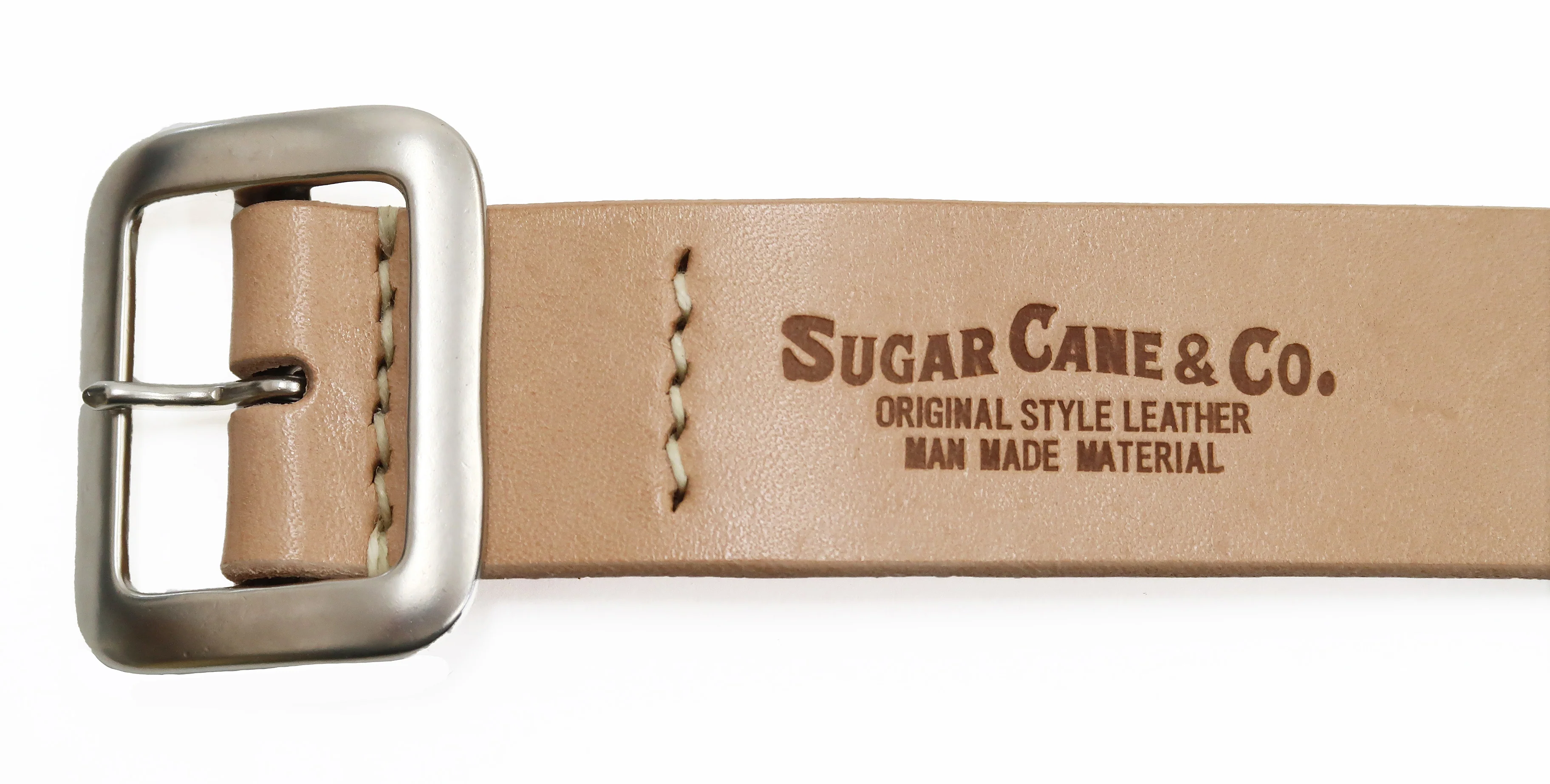 Brand Logo: The Sugar Cane brand logo is engraved on the side of the belt strap with the buckle.