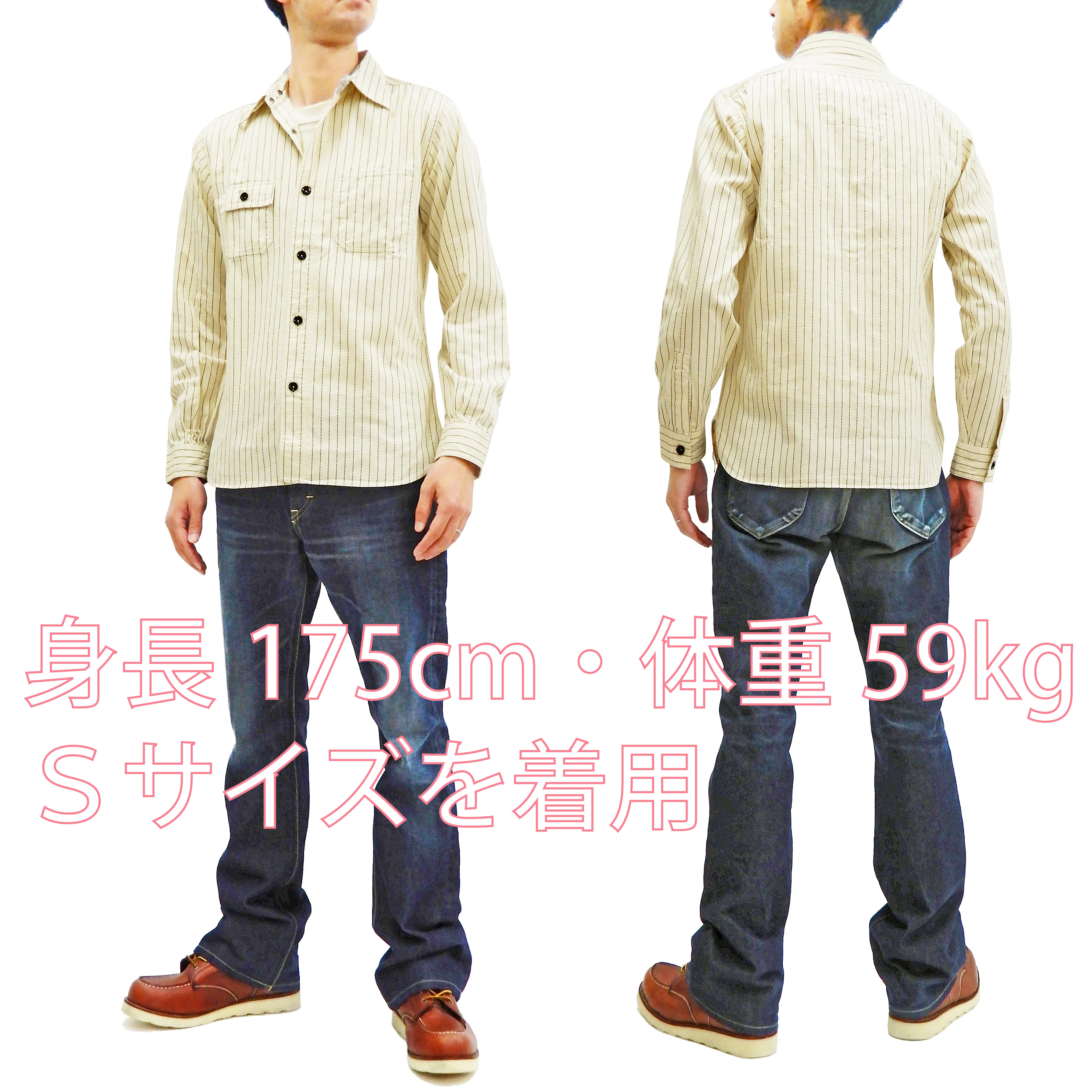 Model name: SC27076 Sugar Cane Fiction Romance Collection by Toyo Enterprises Men's Casual Fashion Modern Fit Striped Shirt with Classical and Fashionable Forms of Work Clothing / Mens Vintage Style Ecru Colour Wabash Stripe Work Shirt for Urban Style / Long Sleeve Shirt for Men.