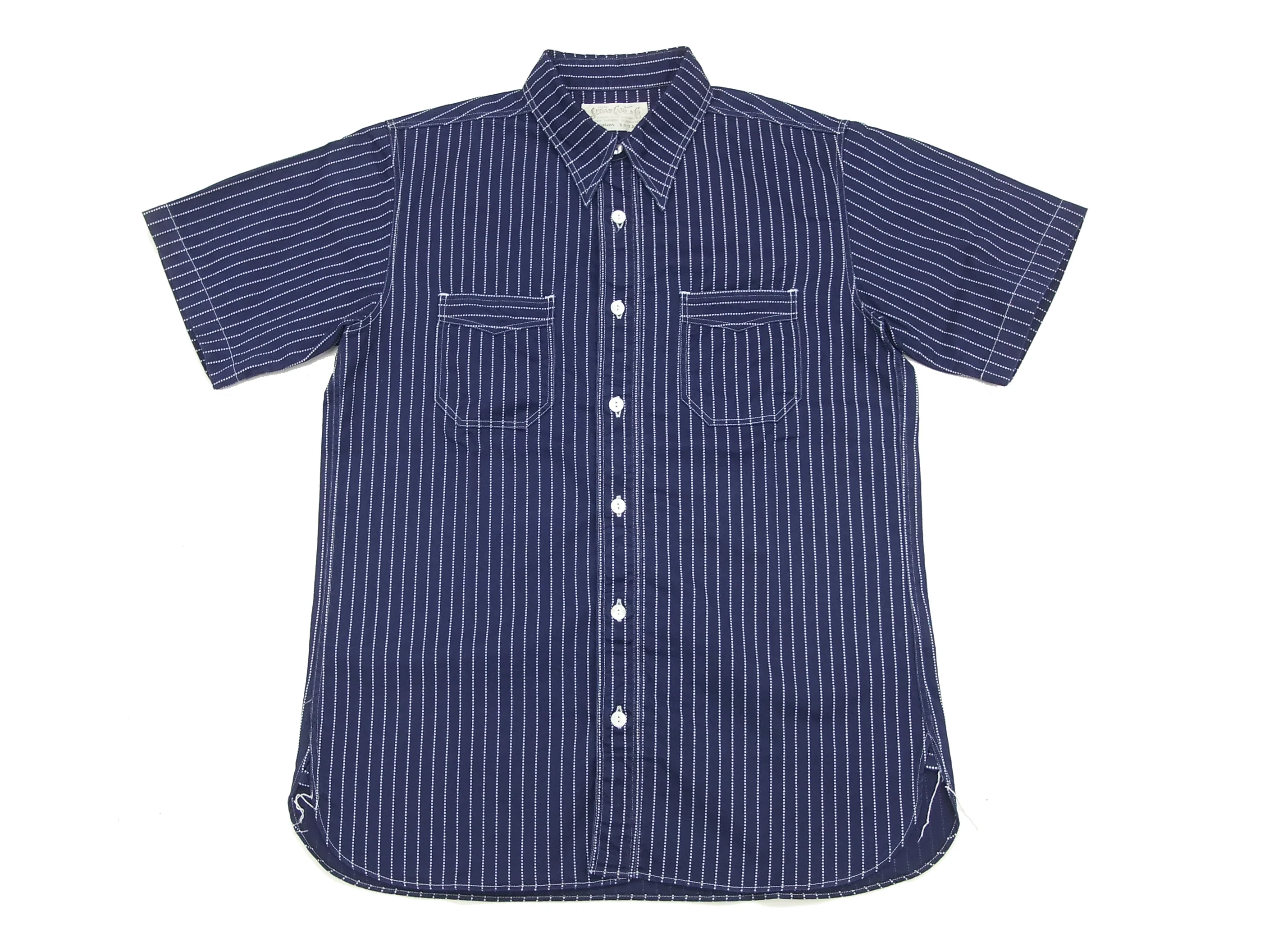 This shirt is made in Japan and produced by Sugar Cane from Toyo Enterprises. Body pattern is uniquely designed and inspired by the traditional American workwear (vintage work shirts). Also the shirt is made of 100% cotton 8.5 Oz. medium weight Japanese indigo-dyed wabash striped twill fabric. New original designs are made for the modern age.
