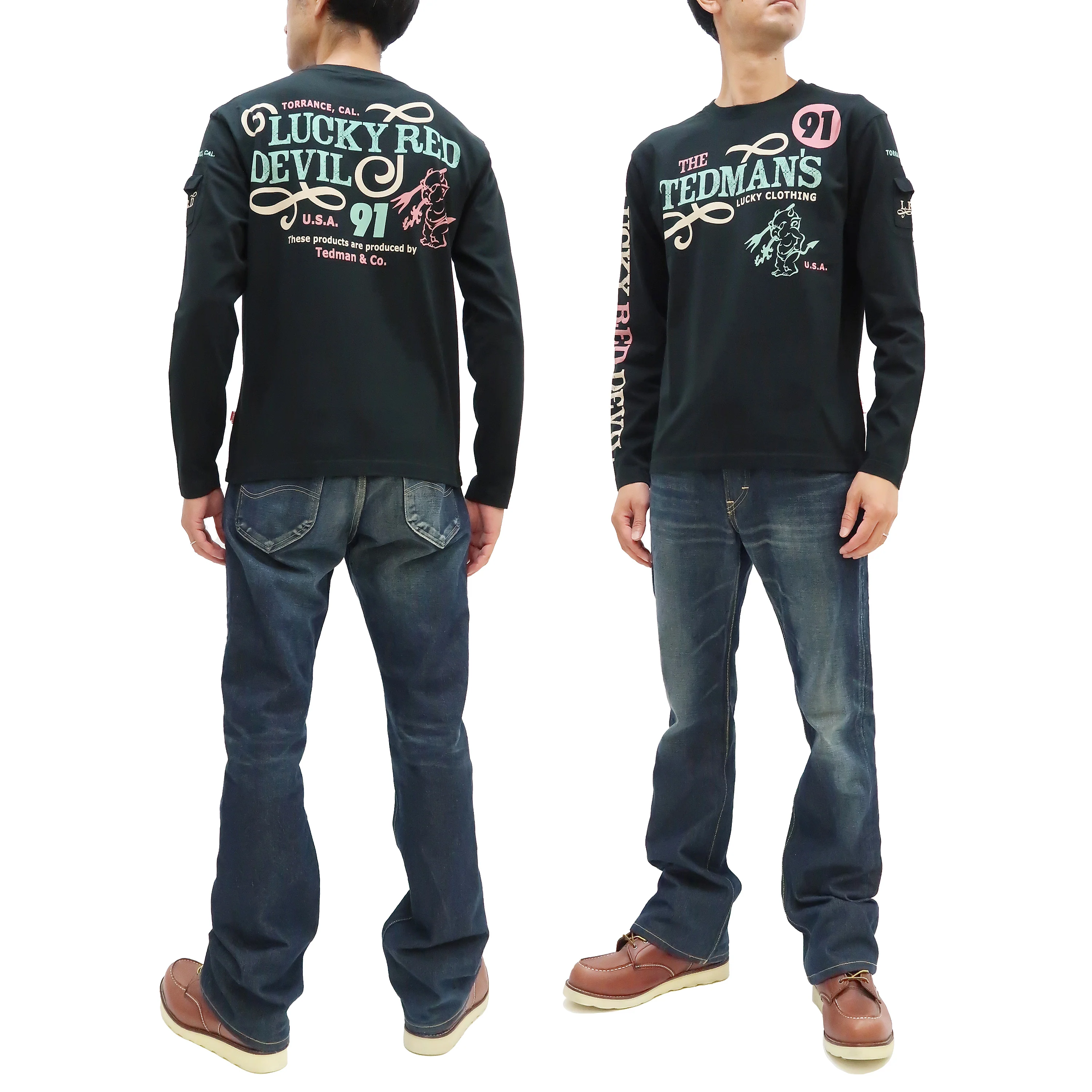 Tedman T-Shirt Men's Lucky Devil Graphic Long Sleeve Tee Efu-Shokai TDLS-350 Black