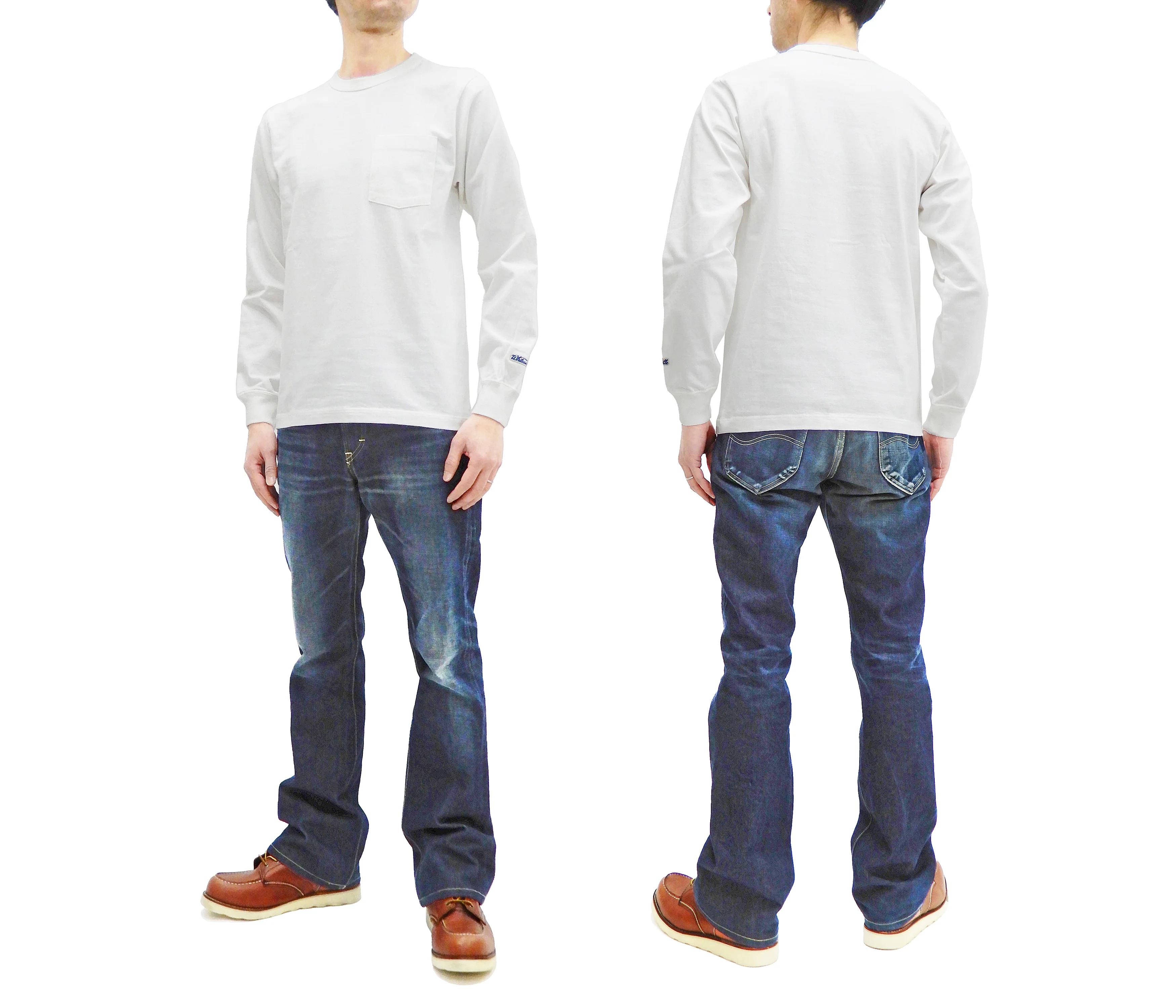This plain long sleeve pocket T-shirt is made in Japan and produced by Toyo Enterprises under a license from Whitesville USA. The Whitesville label, a division of Toyo Enterprise in Japan, is famous around the world for its expertly-crafted a reproduction of american vintage sportswear. The whitesville brand is a now-defunct sportswear label that originally existed in the good old days of America. And then the whitesville brand was resurrected by Toyo Enterprises in Japan. And this long sleeve T-shirt has a exact copy of original label design. The pattern construction of this t shirt is modeled after vintage-style loopwheeled tee shirts, but this item is outfitted with the original details of Whitesville's brand in a contemporary approach. This whitesville's plain pocket T-shirt features 100% cotton one-washed heavyweight loopwheel knitting slub jersey fabric, tubular knit loopwheeling construction with no side seams, cover stitch ribbed crew-neckband, ribbed cuff, a small logo patch at left cuff and set-in-sleeve. And this T shirt is originally intended to wear as a Classic Boxy Fit with short in the body length for the vintage fashionable feel and look. This short fit T-shirt is made to fit shorter torsos but still have the room to comfortably fit wider chests. It is perfect to wear alone (outerwear T-Shirt) or as a layering (underneath other clothing). This t shirt is new original creations by Whitesville from Toyo Enterprises.